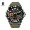 سیتیزن حرارتی 3 تایمه : تایم 1 موتور عقربه حرارتی بالا سمت چپ ((( طریقه تنظیم در مواقع تعویض باتری : بازدن پی در پی کلید پمپ بالا سمت چپ دیجیتال پایین سمت چپ را روی TIME قرار داده بعد با زدن و نگه داشتن کلید پمپ پایین سمت راست B اعداد شروع به چشمک خواهد کرد رها کرده و مجددا همان پمپ را یکی یکی خواهیم زد تا چشمک تک تک از ثانیه به دقیقه و ساعت تا ساعت و دقیقه باهم چشمک بزنند ( مجموعا 5 مرتبه ) بعد کلید پمپ بالا سمت راست C را فشار داده و نگه میداریم عقربه های موتور ساعت سمت چپ بالا شروع به حرکت خواهند کرد به تایم مورد نظر رسید با هر کلید پمپ عقربه ها متوقف خواهند شد ؛ البته تنظیمات کلی ساعت انجام شده و به خریداران محترم ارسال خواهد شد توضیحات فوق برای تنظیم در زمان تعویض باتری میباشد ))) و دو تایم دیجیتال پایین راست صفحه که هر امکانات با کلید پمپ چپ بالایی قابل تعویض میباشند ؛ موتور بالا سمت راست عقربه ثانیه شمار؛ و دارای امکانات 3 تایم ، کرنومتر ؛ آلارم ؛ دماسنج ، تاریخهای میلادی با چراغ پس زمینه