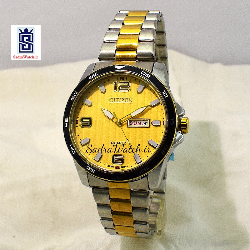 دو رنگ با صفحه طلایی و عقربه ها و اندیکسهای سفید با حلقه مدرج دور شیشه مشکی