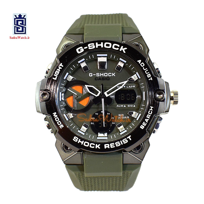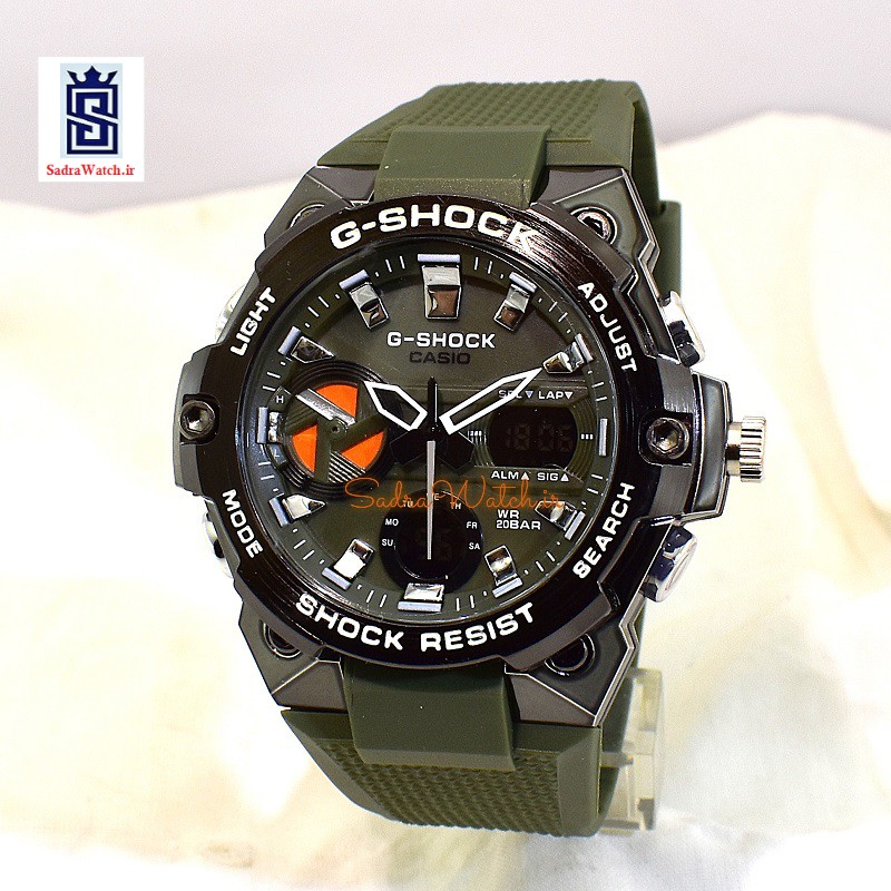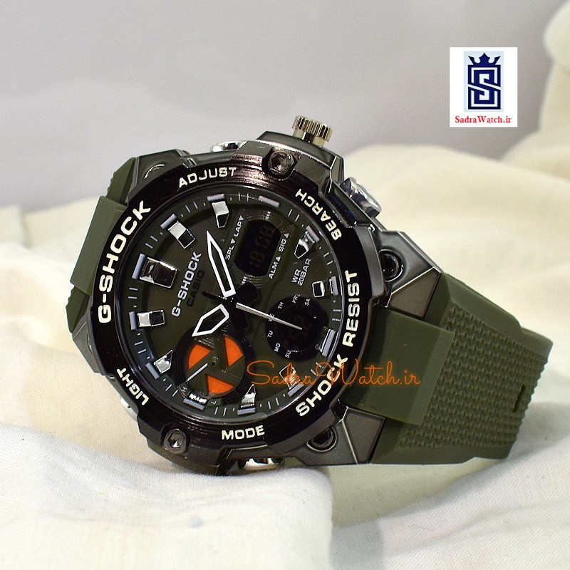 کاسیو جی شاک ،، بند لاستیک ضخیم با صفحه طرح جدید رنگی سبز و نارنجی
