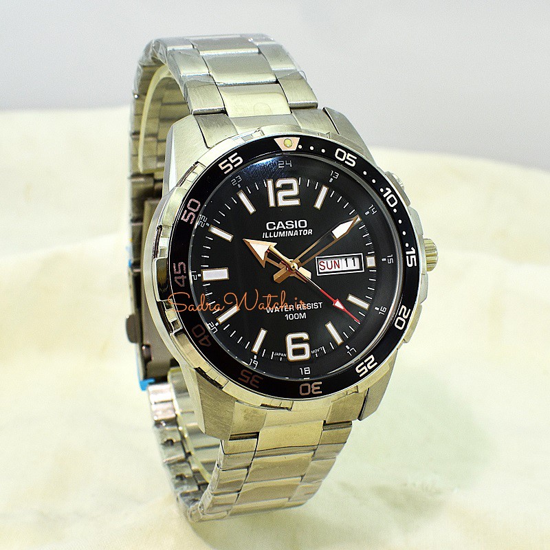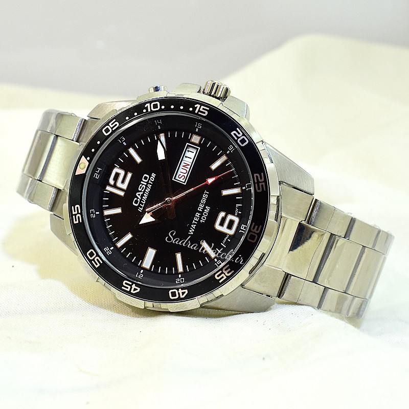 کاسیو صفحه مشکی عقربه های اصلی و نشانگرها قابل شارژ زیر نور مستقیم چراغ و نوردهی طبق تصویر ثبت شده