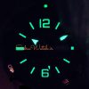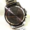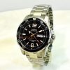 قاب و بند فول استیل نقره ای با عقربه های مسی ،، حلقه دور شیشه گردان دستی مدرج مشکی با نشانگرهای سفید فسفری ،