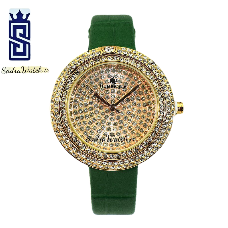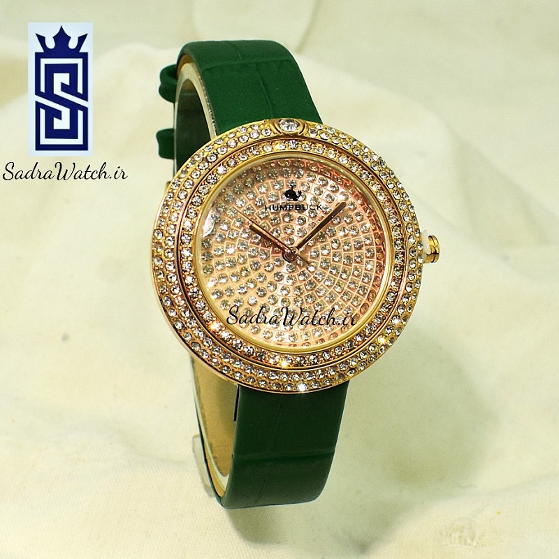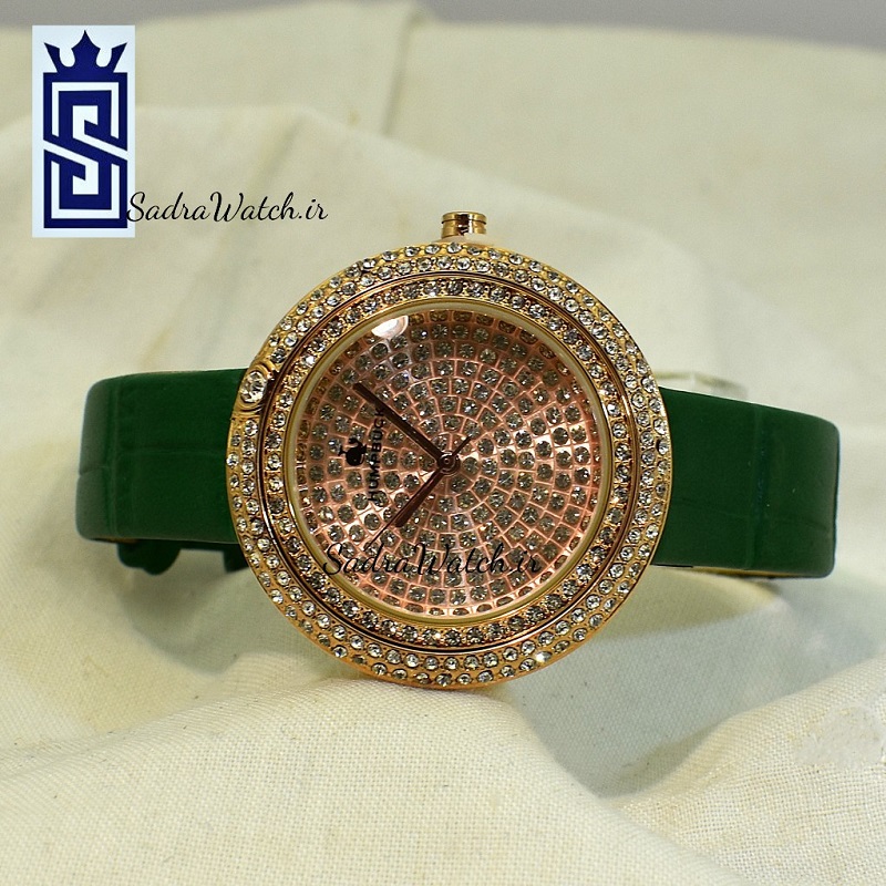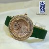 زنانه باموتور قدرتمند و با کیفیت ژاپن * شیشه بسیار شفاف * قاب و صفحه طلایی صفحه و دور قاب تمام نگین حلقه دور شیشه متحرک گردان * بند چرم مصنوعی سبز رنگ فابریک برند با سگک کمربندی برند بسیارزیبا و مجلسی